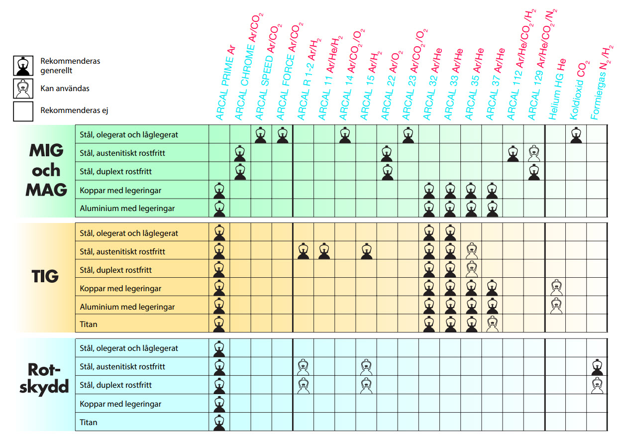 Rekommenderade skyddsgaser för gasbågssvetsning